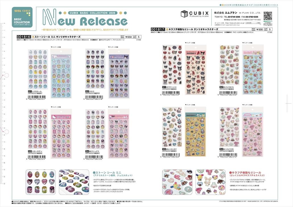 2026年4月発売 サンリオキャラクターズ ストーンシールミニ・キラフチ樹脂もりシール